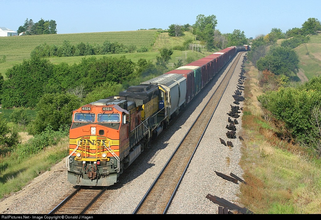RailPictures.Net Photo: BNSF 4524 BNSF Railway GE C44-9W (Dash 9-44CW) at McPherson, Iowa by Donald J Hagen