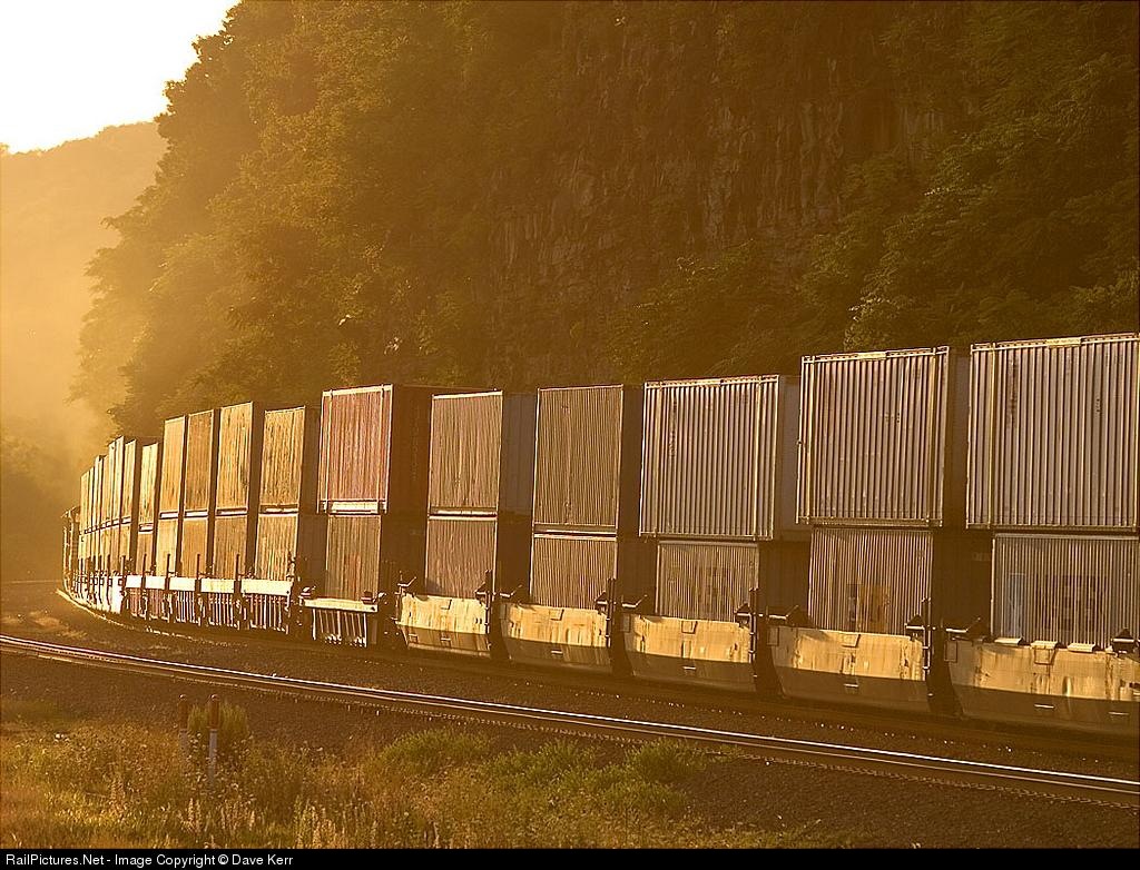 In the warm glow of the approaching sunset, this westbound intermodal passes the Emsworth Locks and Dam on the Ohio River. Canon 20D and 70-200mm lens.