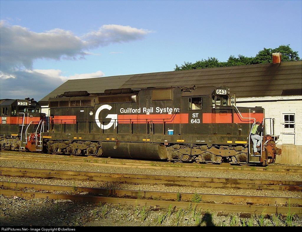 | The 643 is being prepared to lead WASE west from Waterville this evening. Guilford still operates 11 first generation diesels, including two SD26s. |