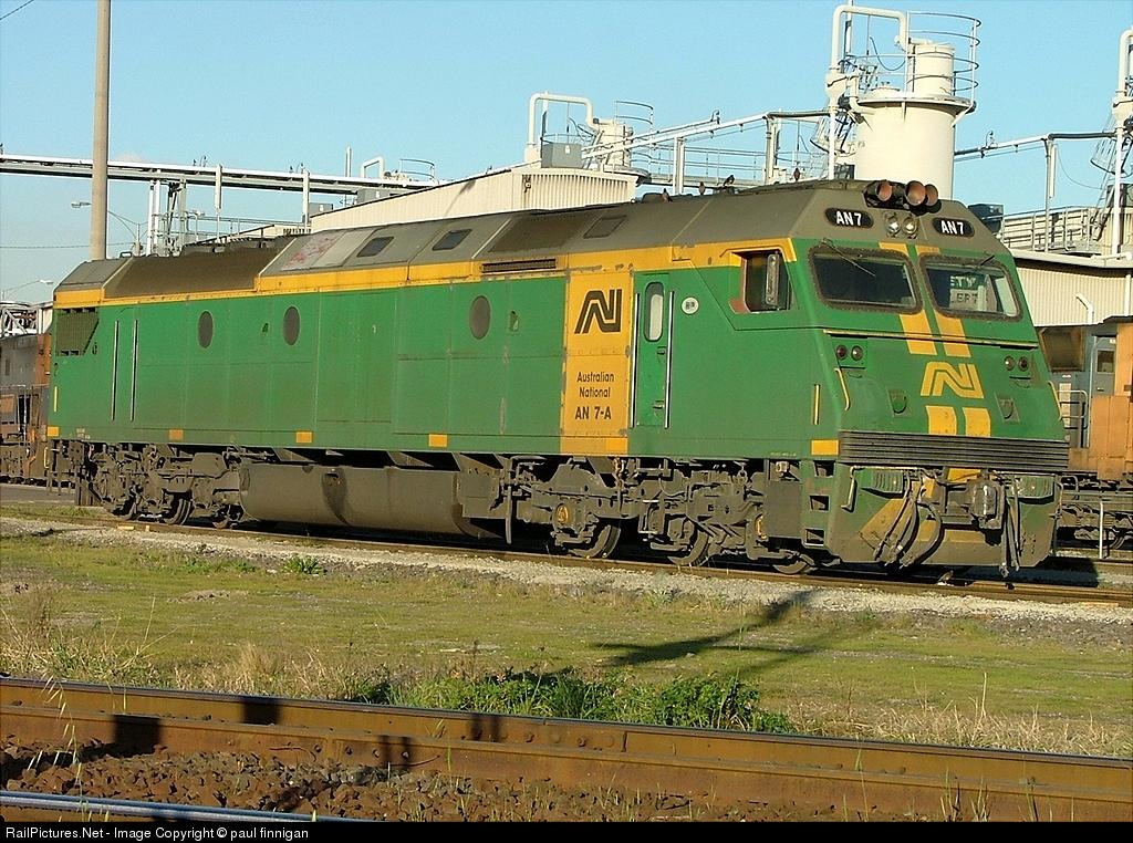 Still in the livery of its former owner Australian National,AN7 waits its next turn of duty at the Pacific National locomotive provisioning centre at Dynon.