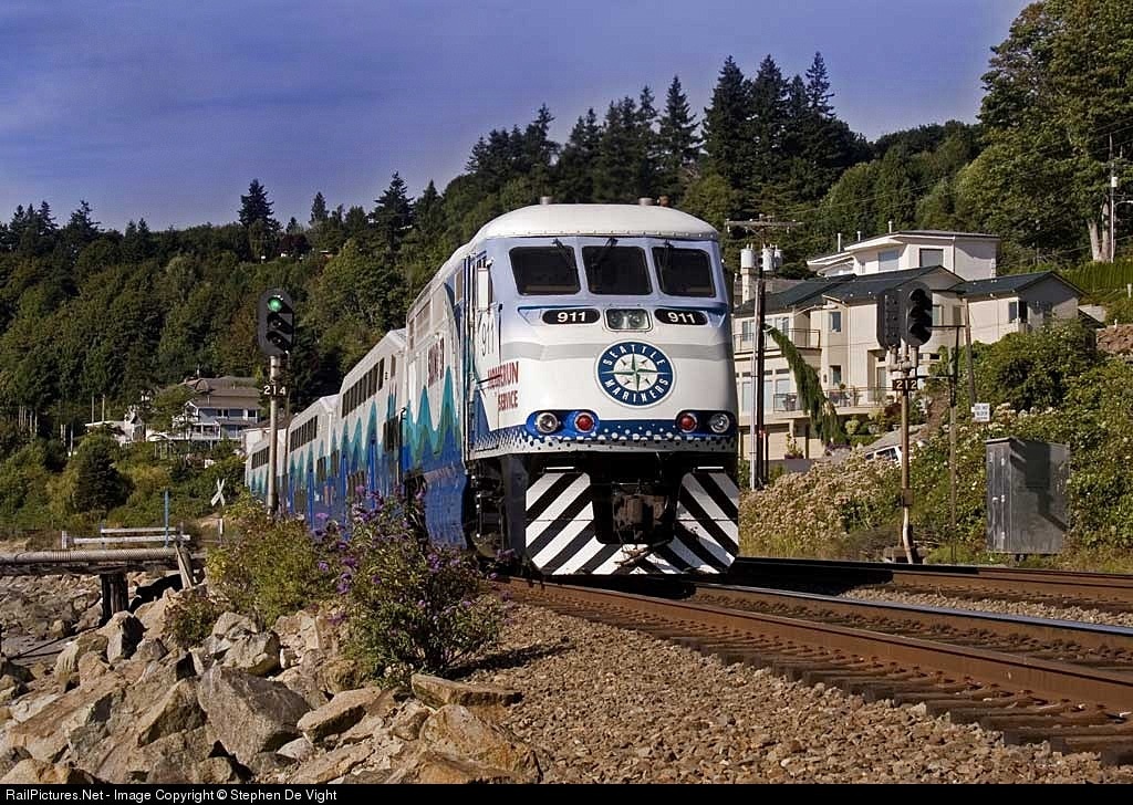 RailPictures.Net Photo: SDRX 911 Sound Transit EMD F59PHI at Edmonds, Washington by Stephen De Vight