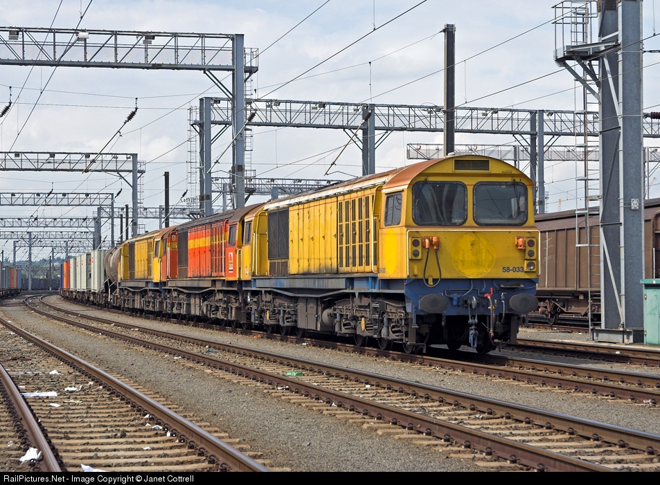 | These class 58's (the other two are 58040 and 58047) have been working in France where they, and numerous others, had been hired in to help construct a new high speed line. This is nearly finished now so the locos are gradually returning to the UK and storage. |