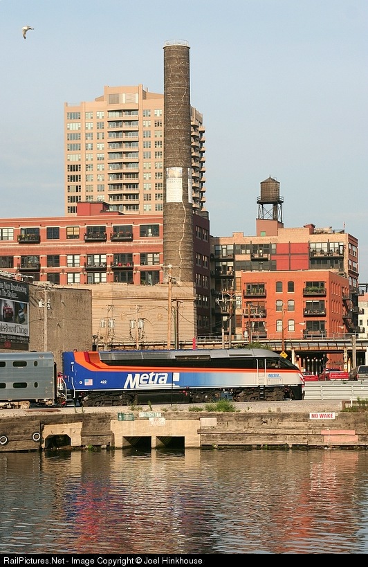| Metra 422 departs from Chicago Union Station's north platforms, skirting the Chicago River before heading out for a second morning run. |