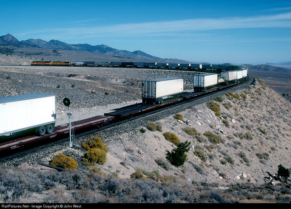 A westbound turns the loop on the climb to Silver Zone Pass on the former Western Pacific in eastern Nevada.