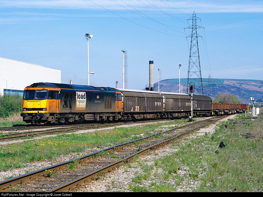 60059 in the obsolete Loadhaul livery enters Margam Yard on a train from Trostre Works.