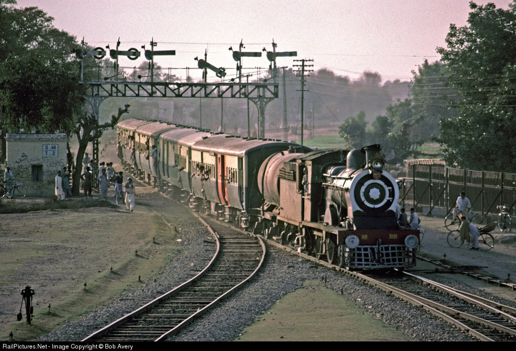 Amazingly, a fleet of British-built 'SPS' (Standard Passenger, Superheated) 4-4-0s were still working passenger trains out of Malakwal in Central Pakistan in 1988. Taken from Signalbox (Interlocking Tower) outside the station. No-one seemed to object to a