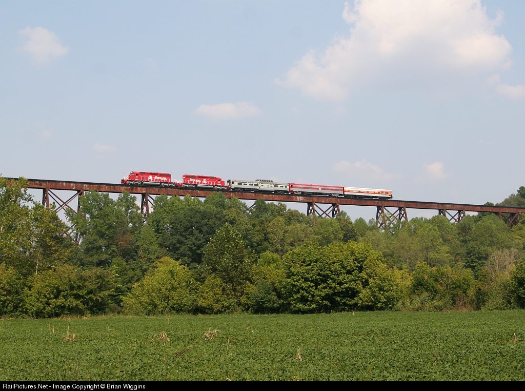 | Out on the the Richland Creek viaduct, better known as Tulip Trestle. The train slowed to a crawl allowing the passengers a stunning view and photographers a near perfect shot of the train. |