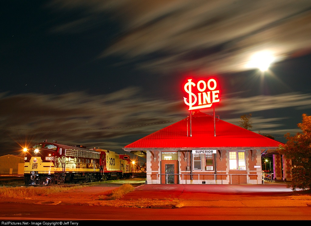 | Night photo shoot at Superior for Railfan Weekend. Thanks to Steve Barry of Railfan & Railroad for the lighting; Steve Glishinski for organizing the event; Niel Hagen of CP; and my wife for turning the neon sign on and off during the long exposure. |
