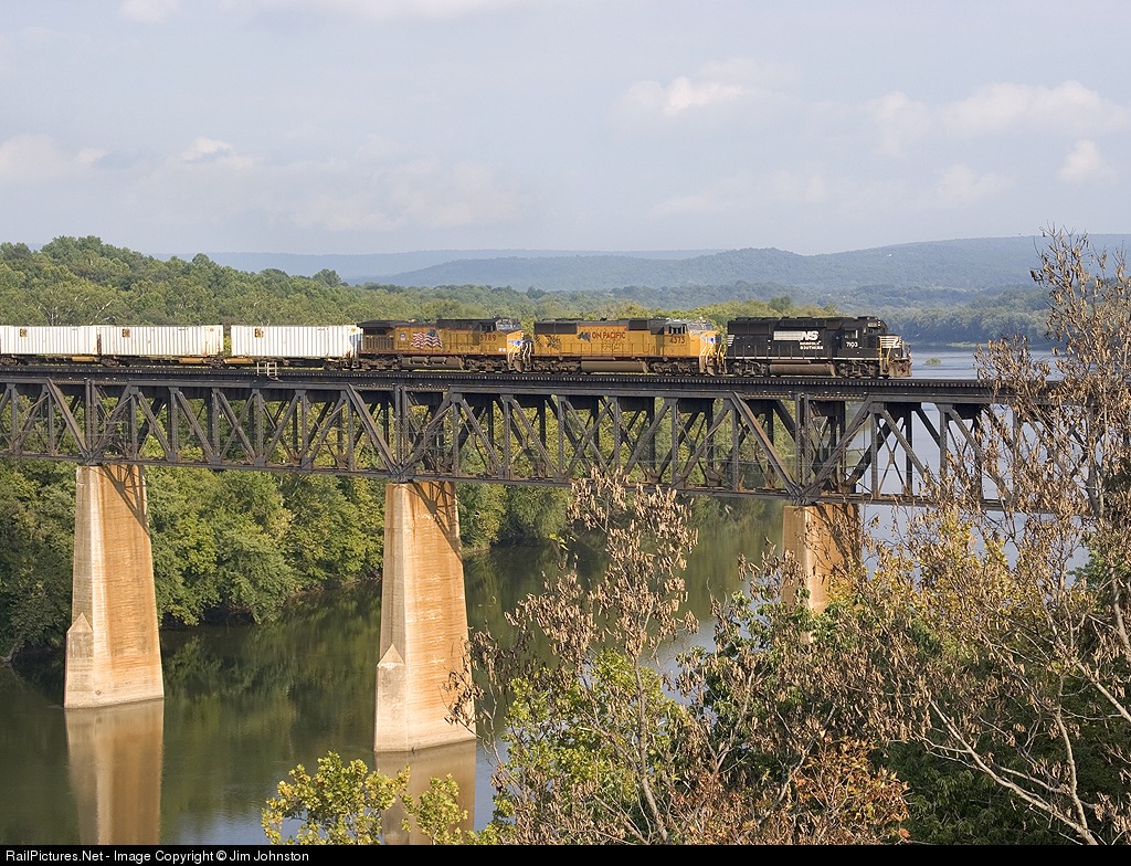 Hot intermodal NS 203 crosses the Potomac River south bound from Maryland into West Virginia.