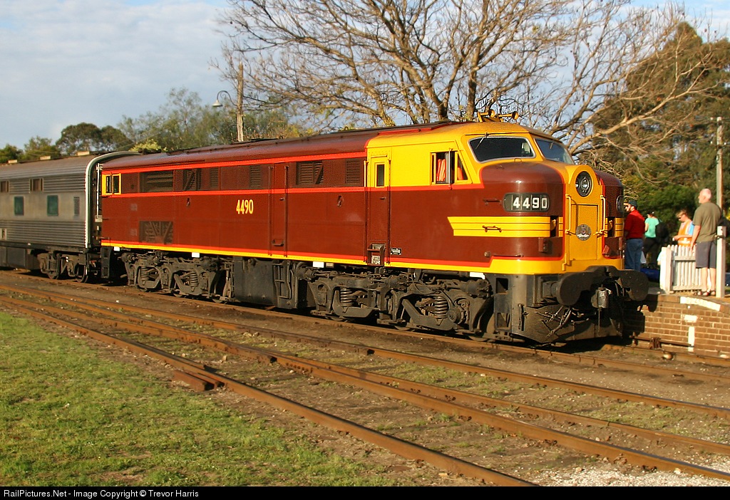 4490 Waiting at Thirlmere station for it's return to Sydney with the Southern Aurora carriages and 3830.