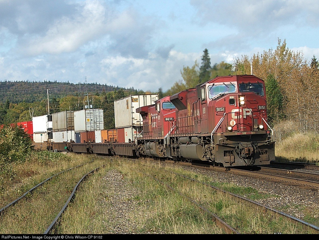| CP #108-CP 9151, 8611, intermodal-364 axles @ 16:25 ~ EMPU, CPPU, EMHU, K Line, APL, MOL, Hyundai, Cosco, Hapag Lloyd, OOCL |