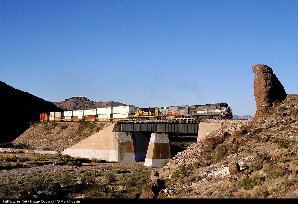 A diverse set of locomotives power this stack train eastward through Kingman Canyon.