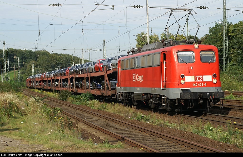 140 432 heads south through Cologne West on a Opal/VW car train.
