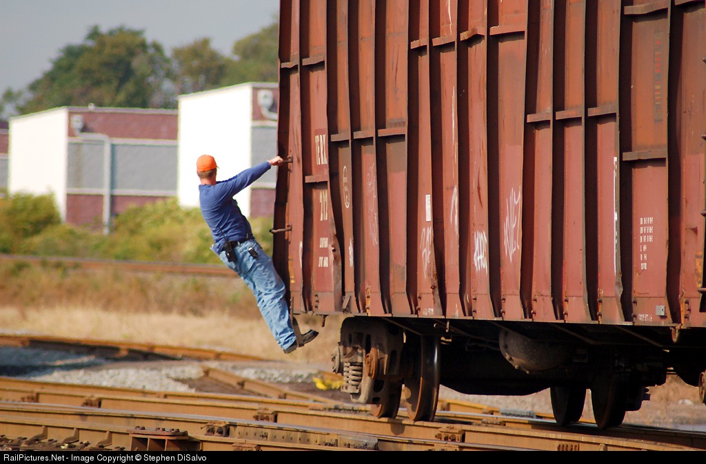 Brakeman on WS-5 tries to keep in shape while riding to a hitch.