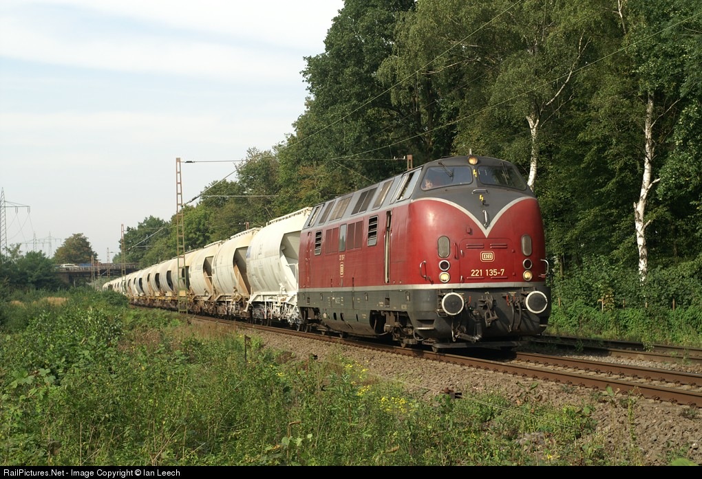 Having run around its train in Lintorf 221-135 heads south through Tiefenbrioch to Ratingen on a chalk train.221-135 is preserved & owned by Barbara-Birgit Pirch.It is hired by Neusser Eisenbahn to work freights around the Duisburg area.