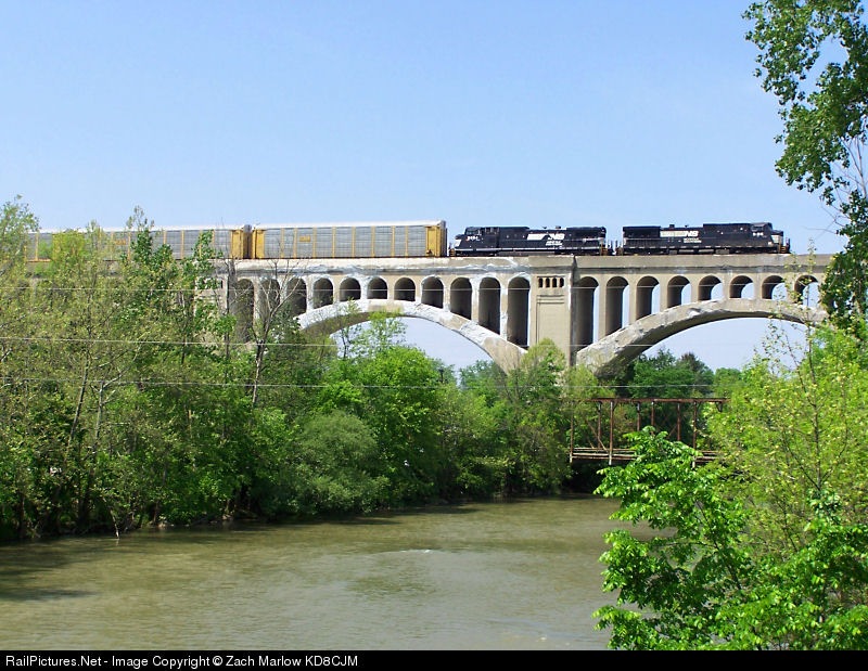 NS 9105 leads a CSX train eastbound across the Big Four Bridge, located on the south side of Sidney