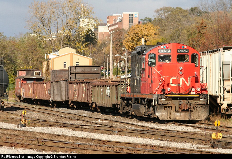 RailPictures.Net Photo: CN 7076 Canadian National Railway EMD GP9 at Brantford, Ontario, Canada by Brendan Frisina
