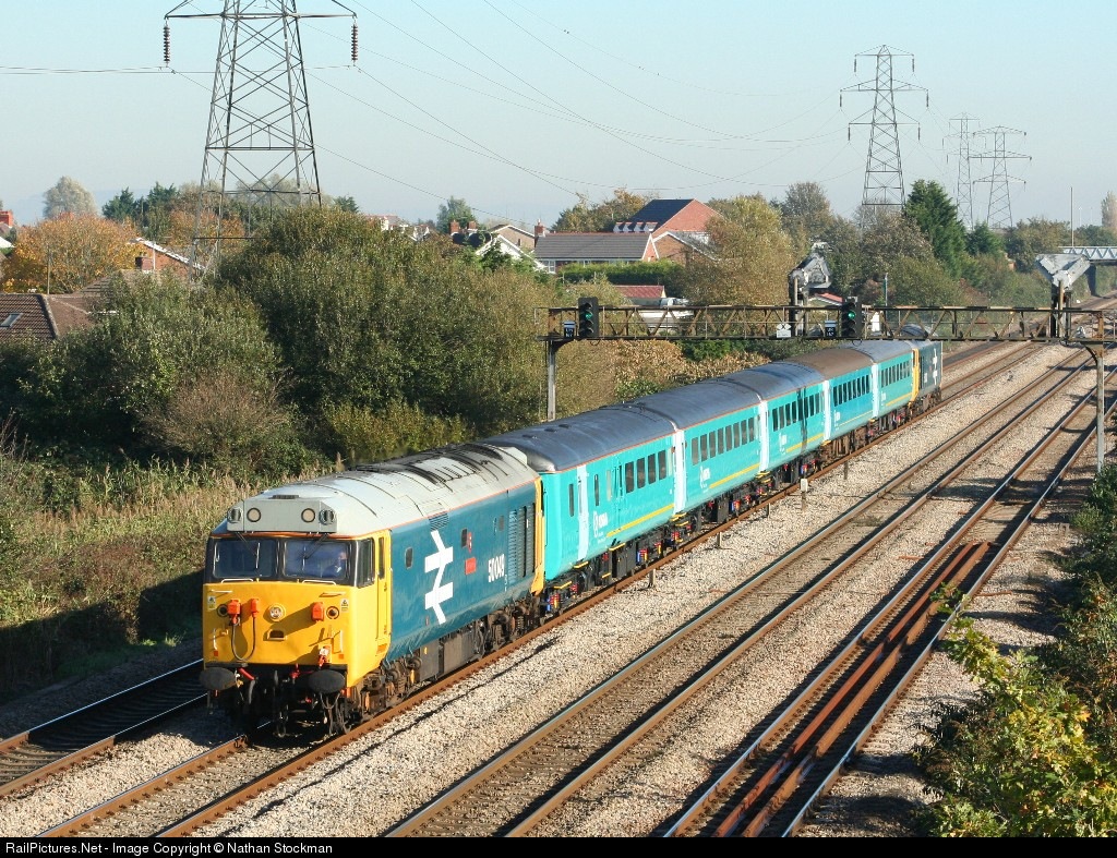 50049 is pictured working a Newport to Cardiff additional 'Rugex', classmate 50031 is on the rear.