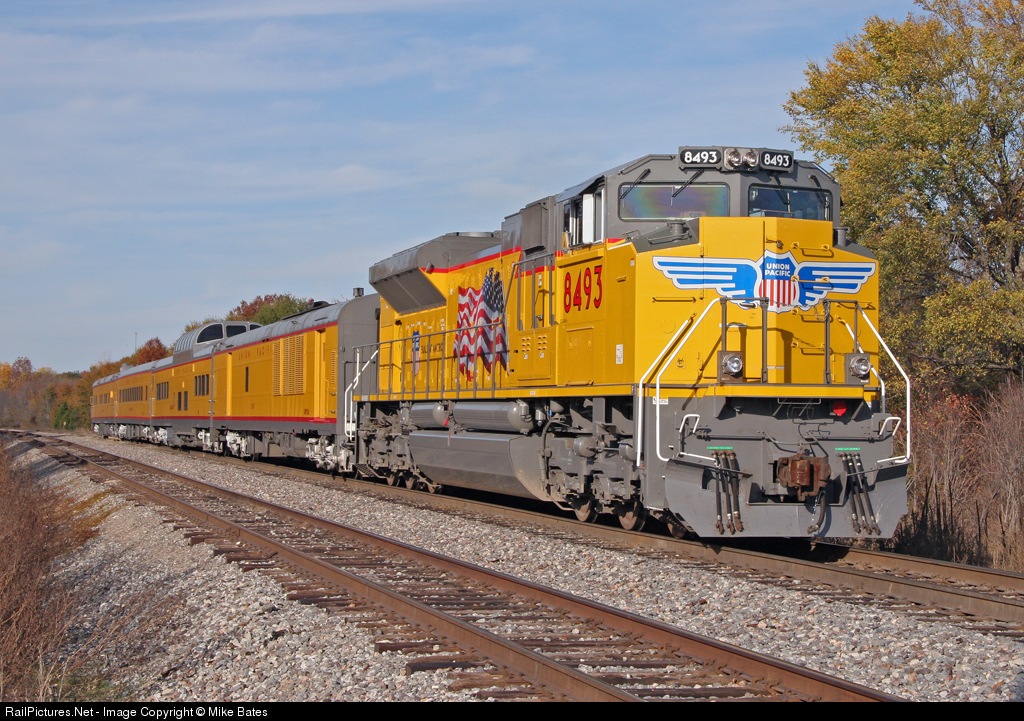 See beautiful diesel locomotives in UP's traditional armour yellow livery and special commemorative paint schemes pulling long trains of yellows cars reminiscent of the days when UP domeliners seemed to go Everywhere West.