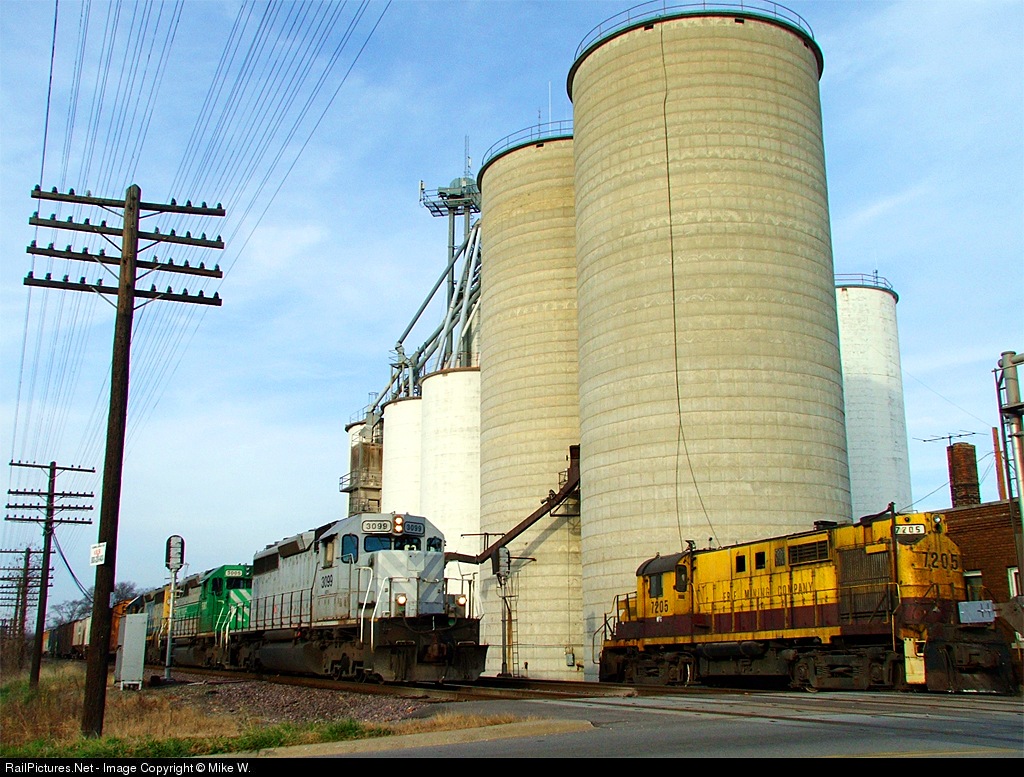 A train on the UP/CSX Joint Line passes the old Erie Mining Company RS-11 used by Watseka Farmers & Grain Co-Op (reporting marks WFG 7210) to switch out this and other elavators in the area. 'Twas quite a treat to see the old girl still there.