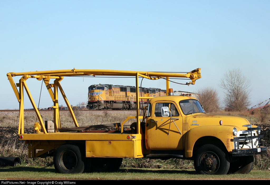 A neat looking old truck makes for a nice outline as this westbound freight train starts into Ogden.