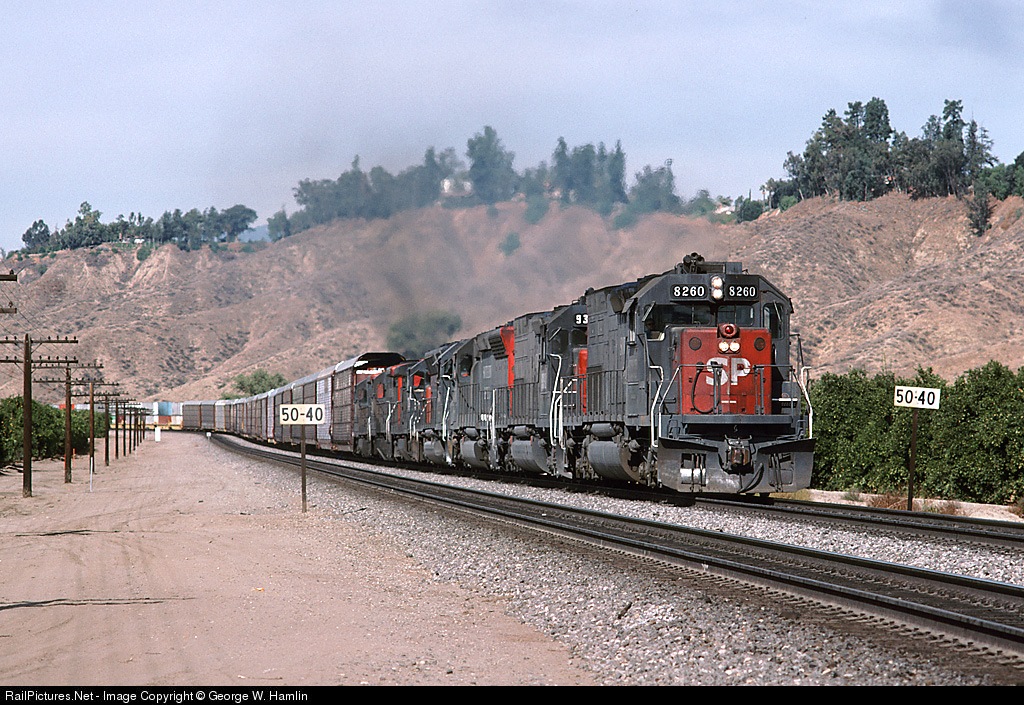 RailPictures.Net Photo: SP 8260 Southern Pacific Railroad EMD SD40T-2 at E. of Redlands, California by George W. Hamlin