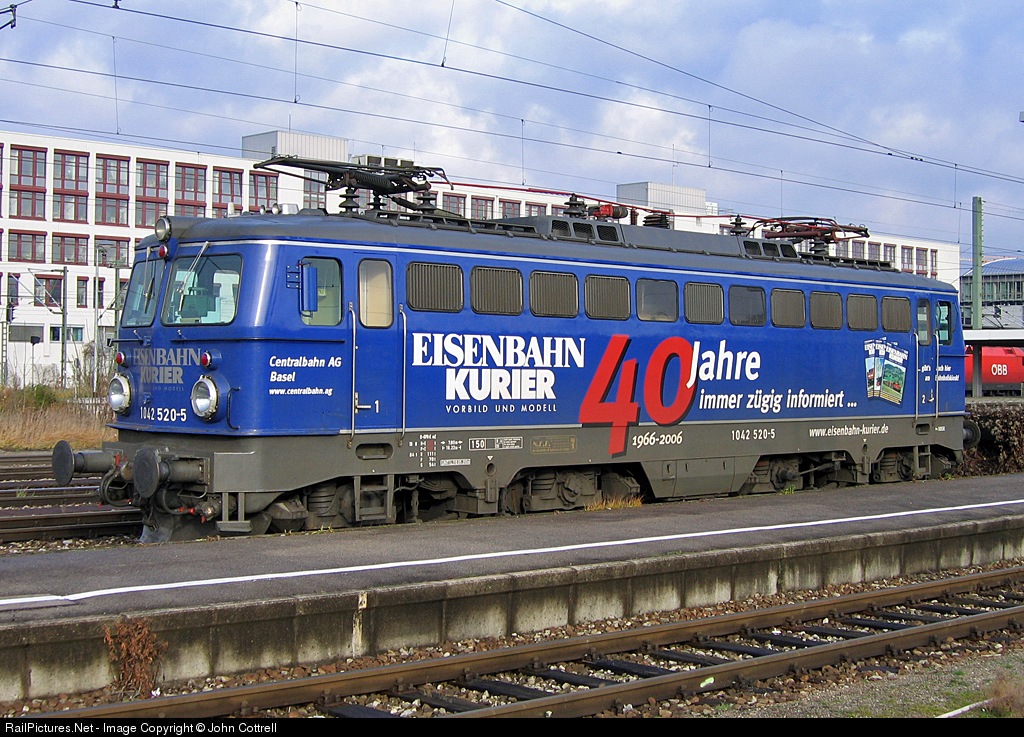 | Former ÖBB class 1042 is now operated by Centralbahn in Germany and carries a special livery to celebrate 40 years of Eisenbahn Kurier magazine. |