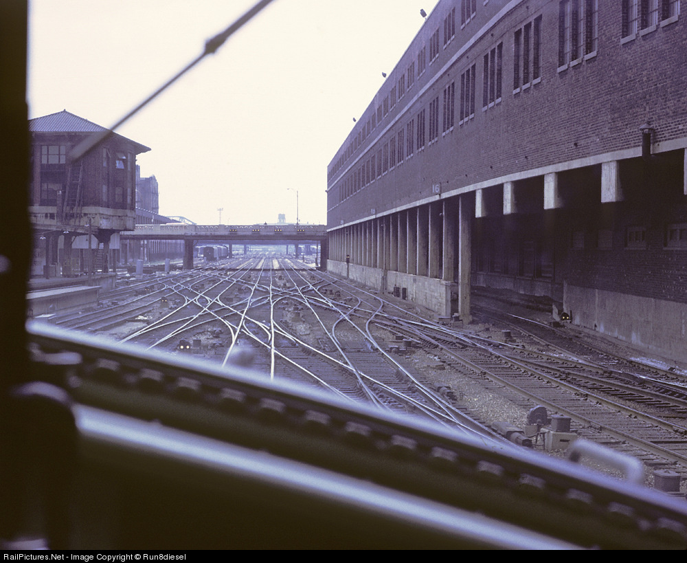 On the eve of Amtrak, we're in the cab of an ex-Burlington E9, on the point of the very last non-Amtrak combined Empire Builder/North Coast Limited/Afternoon Zephyr to Minneapolis and points west. Scanned from a Kodachrome slide.