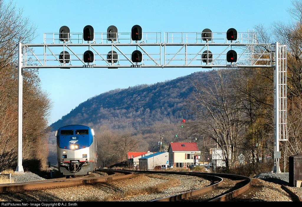 RailPictures.Net Photo: AMTK 160 Amtrak GE P42DC at Cove Township, Pennsylvania by A.J. Smith