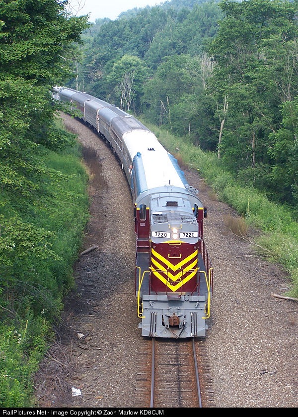 Ohio Central 7220 running long hood forward leads an eastbound NRHS excursion at Bowerston