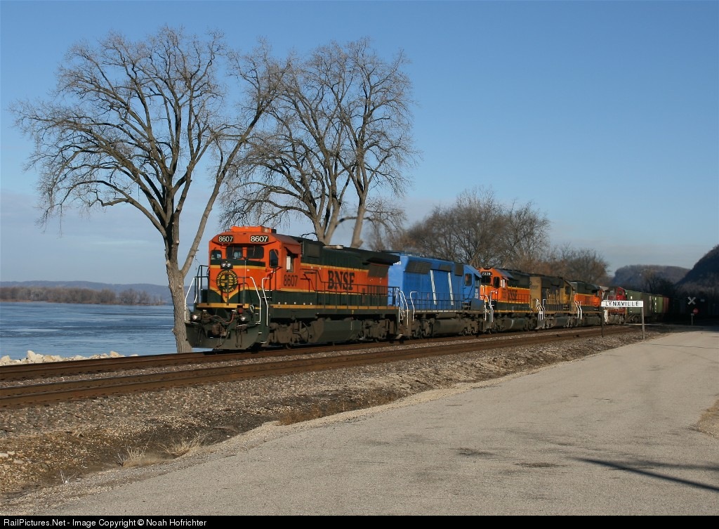 RailPictures.Net Photo: BNSF 8607 BNSF Railway GE B40-8 (Dash 8-40B) at Lynxville, Wisconsin by Noah Hofrichter