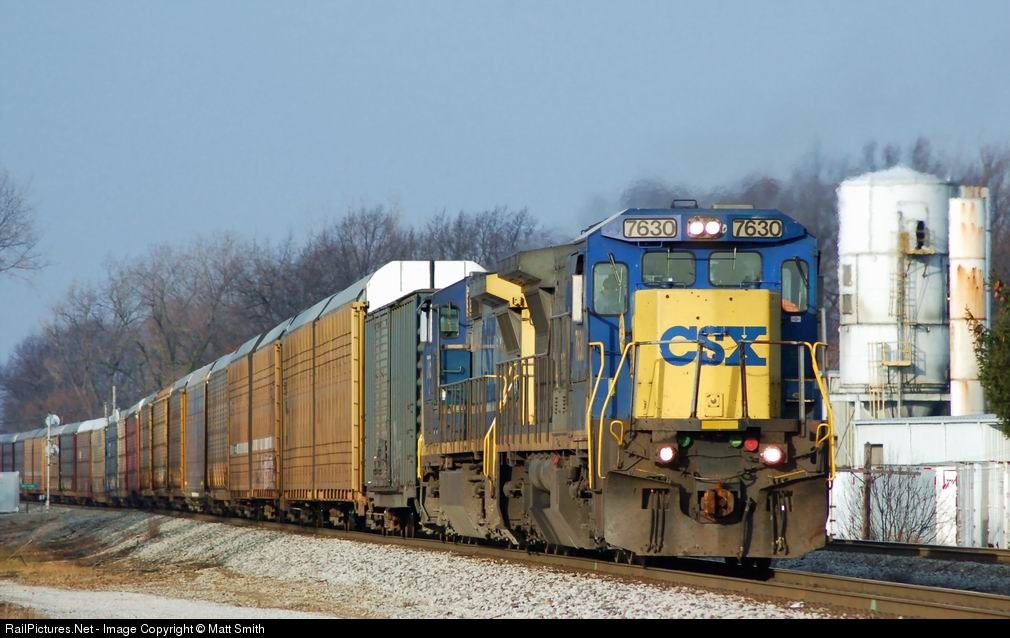 Norfolk Southern, Detroit to Bellevue train 178, has CSXT 7630 & 7775, leading as they come into Bellevue, Oh., passing the signals at Klines, on the Toledo District.