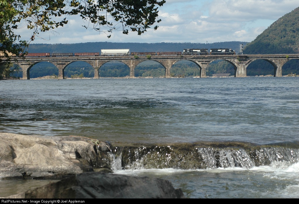 NS 3037 and 2844 lead the H2W across the Susquehanna River as it begins it's trip from Enola Yard to Renovo on the Buffalo Line. Nikon D70.