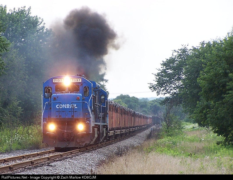 Ohio Central 7137 leads a combination Coal/Trash train eastbound on the Panhandle