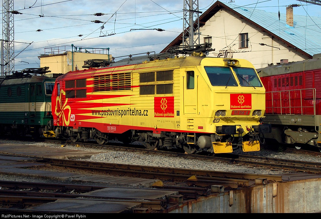 New publicity paint on the electric engine Škoda E499.2 Czech railways CD 151 014-8 "Postovní sporitelna".