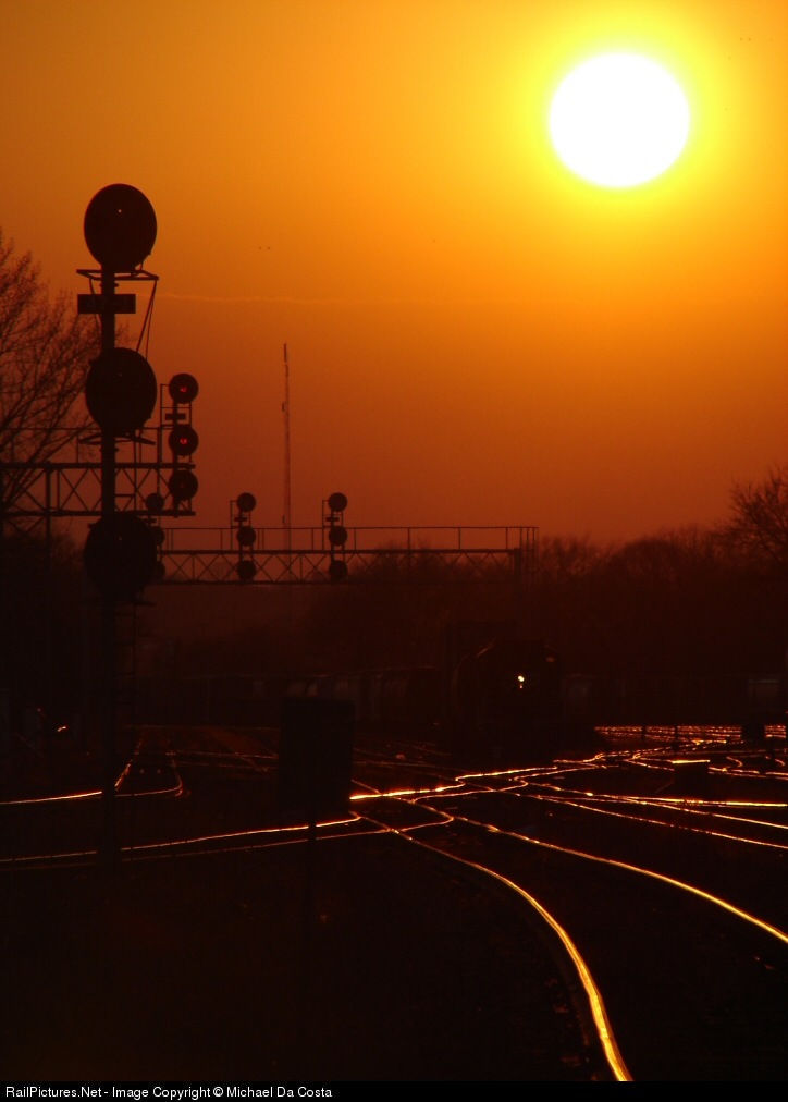 CP's 3rd Emery sits in Lambton Yard awaiting a light off of track 23 for the MacTier Sub as the sun sets overhead producing a spectacular orange-red glow.