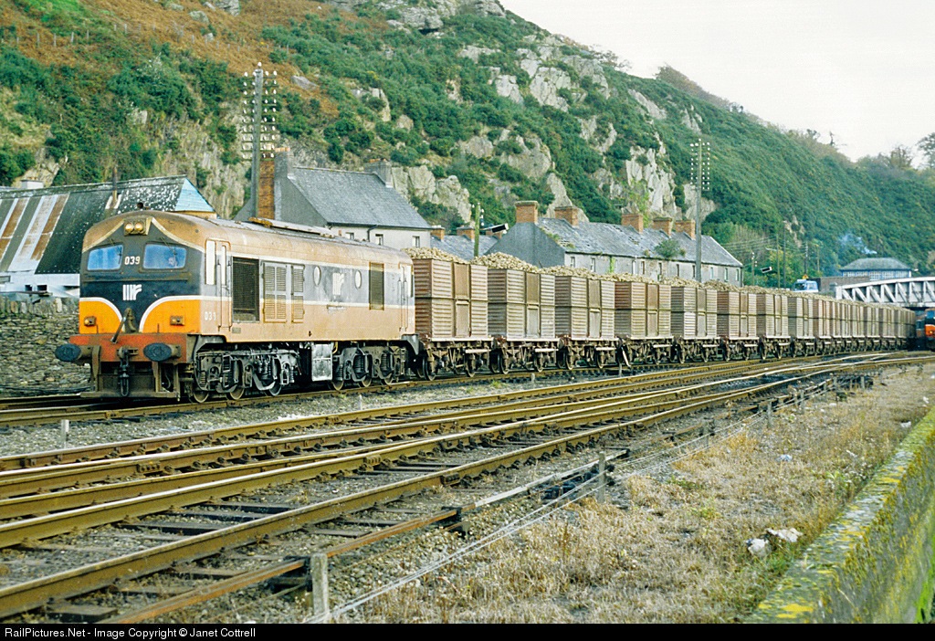 039 pulls away from Waterford with a loaded sugar beet train from Wellington Bridge to the processing factory at Mallow. Sadly, this traffic no longer runs.