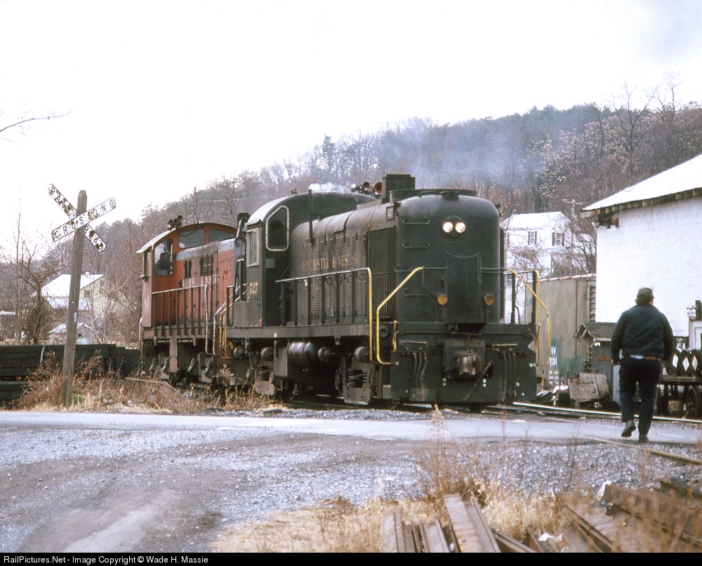| Two of the W&W's venerable ALCOs are ready to tie down at Gore after arriving on an empty train of sand hoppers. |