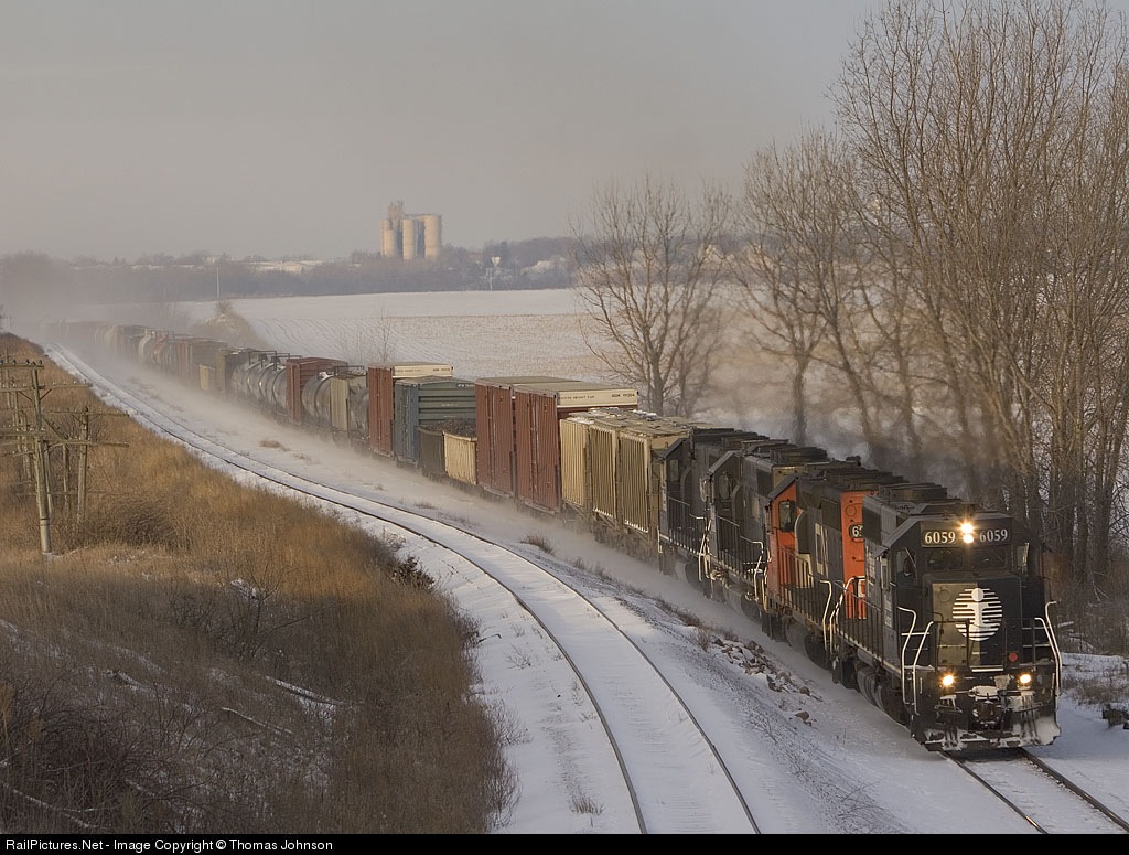 Regular Manifest Train from Waterloo, IA - Chicago, IL in the early morning sun on a cold January morning.