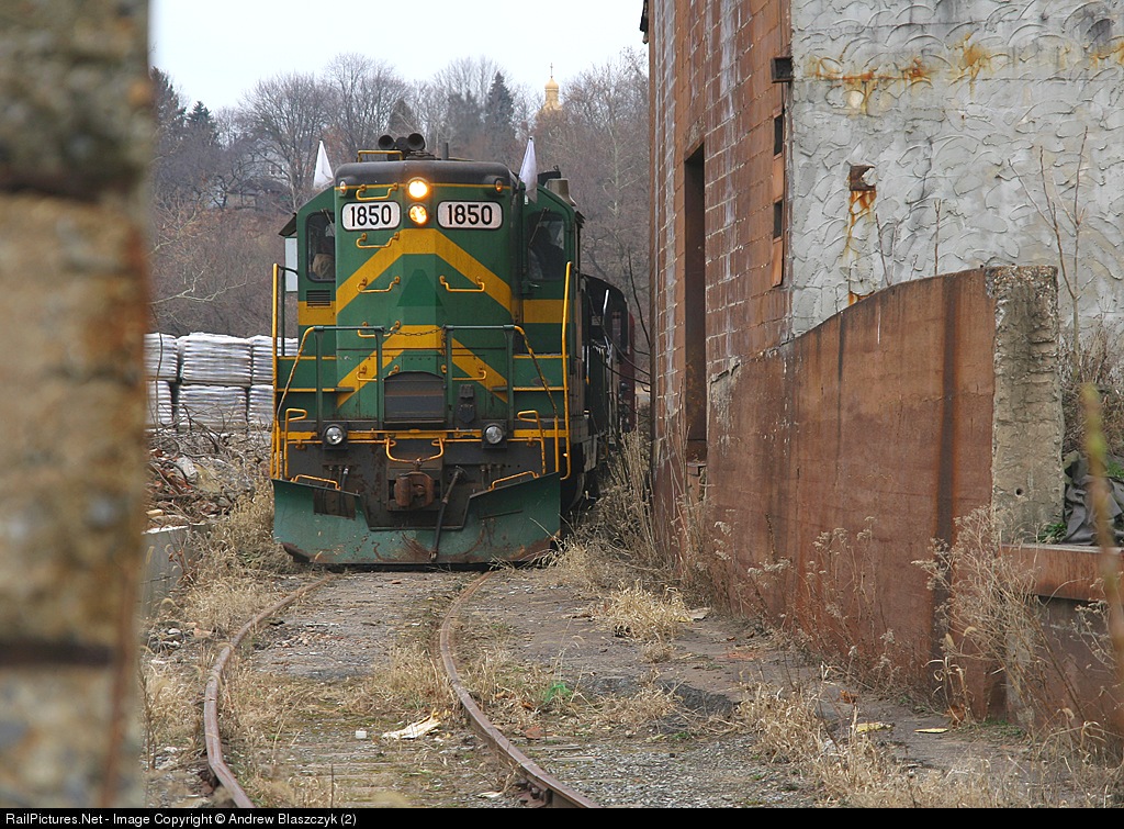 BDRV 1850 shoves the 142 and coach back around the sharpest curve on the 'line' and between two industries on the last few yards of the journey.