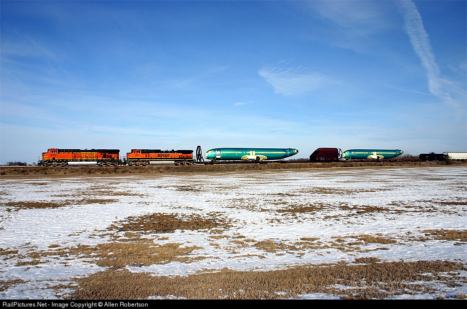 BNSF 7674 heads a WB with Boeing fuselages in tow.
