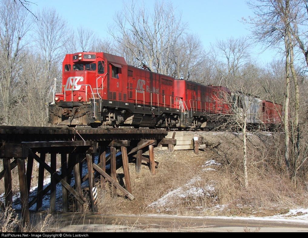 | The pair of CF7's cross over yet another scenic wooden trestle as the sounds of a pair of F7A's fills the air, bouncing off the surrounding trees. |