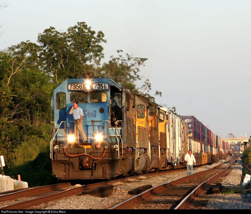 A fresh Union Pacific crew boards CSX train Q-145, the Atlanta to Los Angeles stack train, at Marconi Drive in New Orleans on the Norfolk Southern's Back Belt line, a frequent crew change point for CSX and NS trains going to the Union Pacific. Immediately behind the locomotives are a few Tropicana refrigerator cars loaded with Tropicana juice bound from southern California markets.