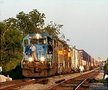 A fresh Union Pacific crew boards CSX train Q-145, the Atlanta to Los Angeles stack train, at Marconi Drive in New Orleans on the Norfolk Southern's Back Belt line, a frequent crew change point for CSX and NS trains going to the Union Pacific. Immediately behind the locomotives are a few Tropicana refrigerator cars loaded with Tropicana juice bound from southern California markets. |