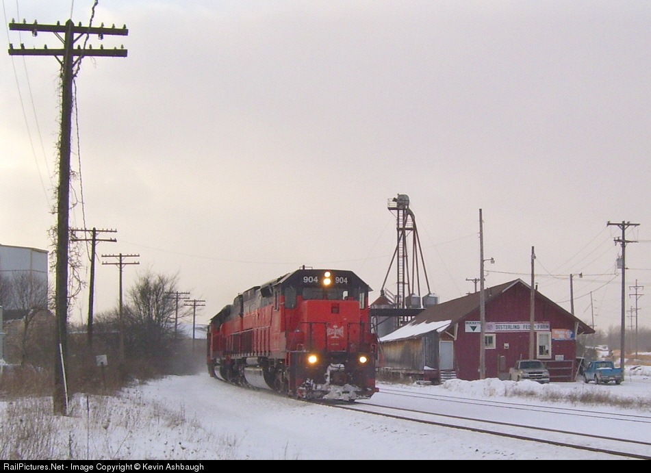 | BLE 904S passes the former Grove City Station at MP 62.6, now a feed store, with 23 scrap gons and 1 coil car holding the FRED. 8 degree PA weather today. |