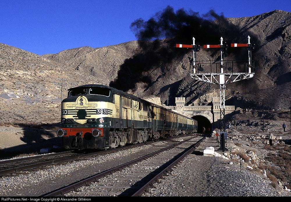 This is PR ARPW20 3830 emerging from summit Tunnel at Kolpur, at 1800 meters above Sea Level on the Mushkaf Bolan Pass section of Pakistan Railways. This (once highly strategic) line with its 1:25 gradients through the remote Dozan Gorge belongs to the most spectacular railway achievements on Earth. Deep in the Balochistan Province, this area is nowaday off-limit to foreigners...