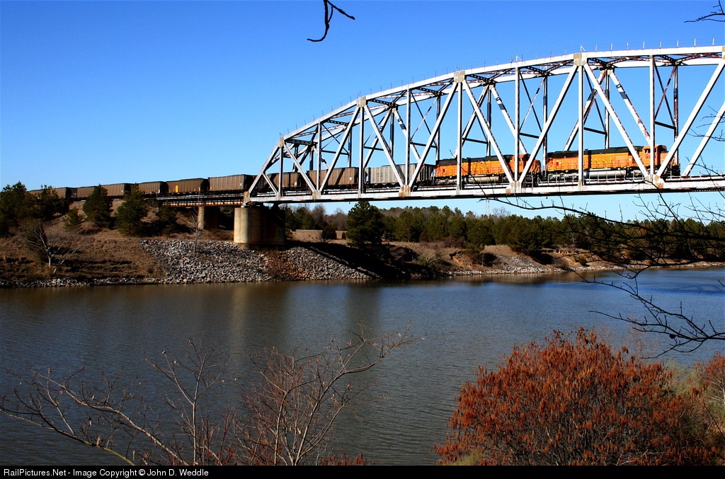 BNSF coal train crossing the Tombigbee River in Amory, Misssissippi. Got a whistle blow from the crew.