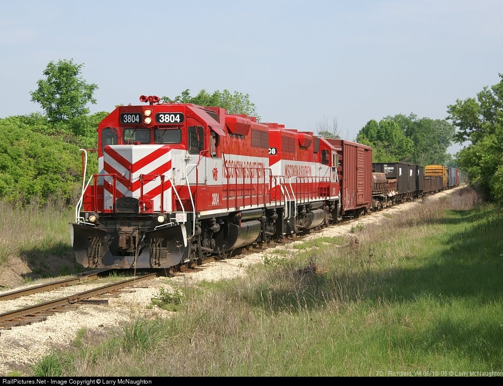 RailPictures.Net Photo: WSOR 3804 Wisconsin & Southern EMD GP38 at Richfield, Wisconsin by Larry McNaughton