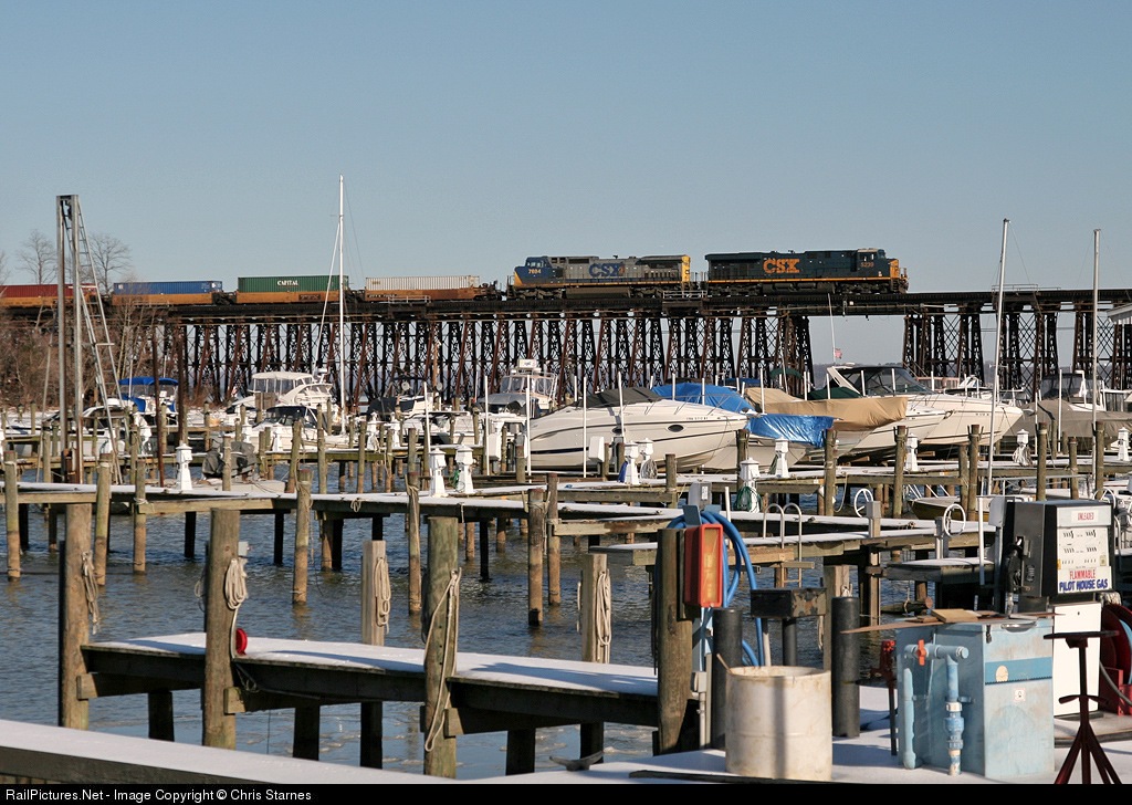 Southbound CSX train Q130 sails across Neabsco Creek on a clear and cold Friday afternoon in NOVA.