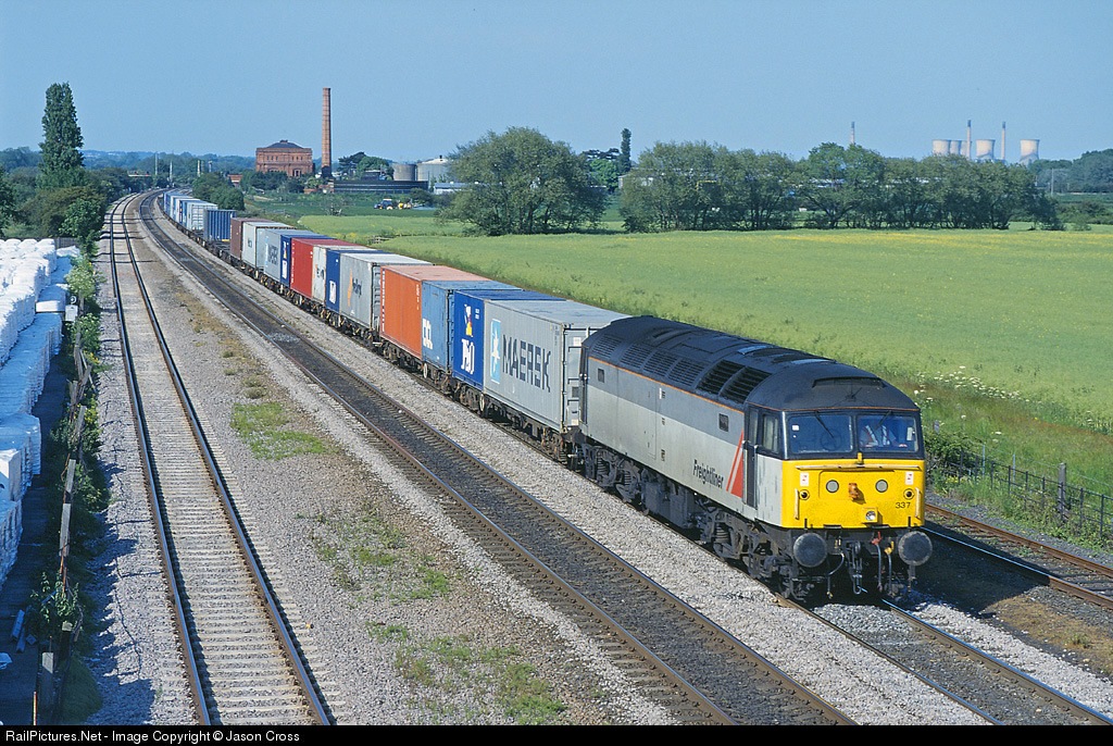 47337 approaches Burton on Trent with a Leeds to Southampton intermodal.